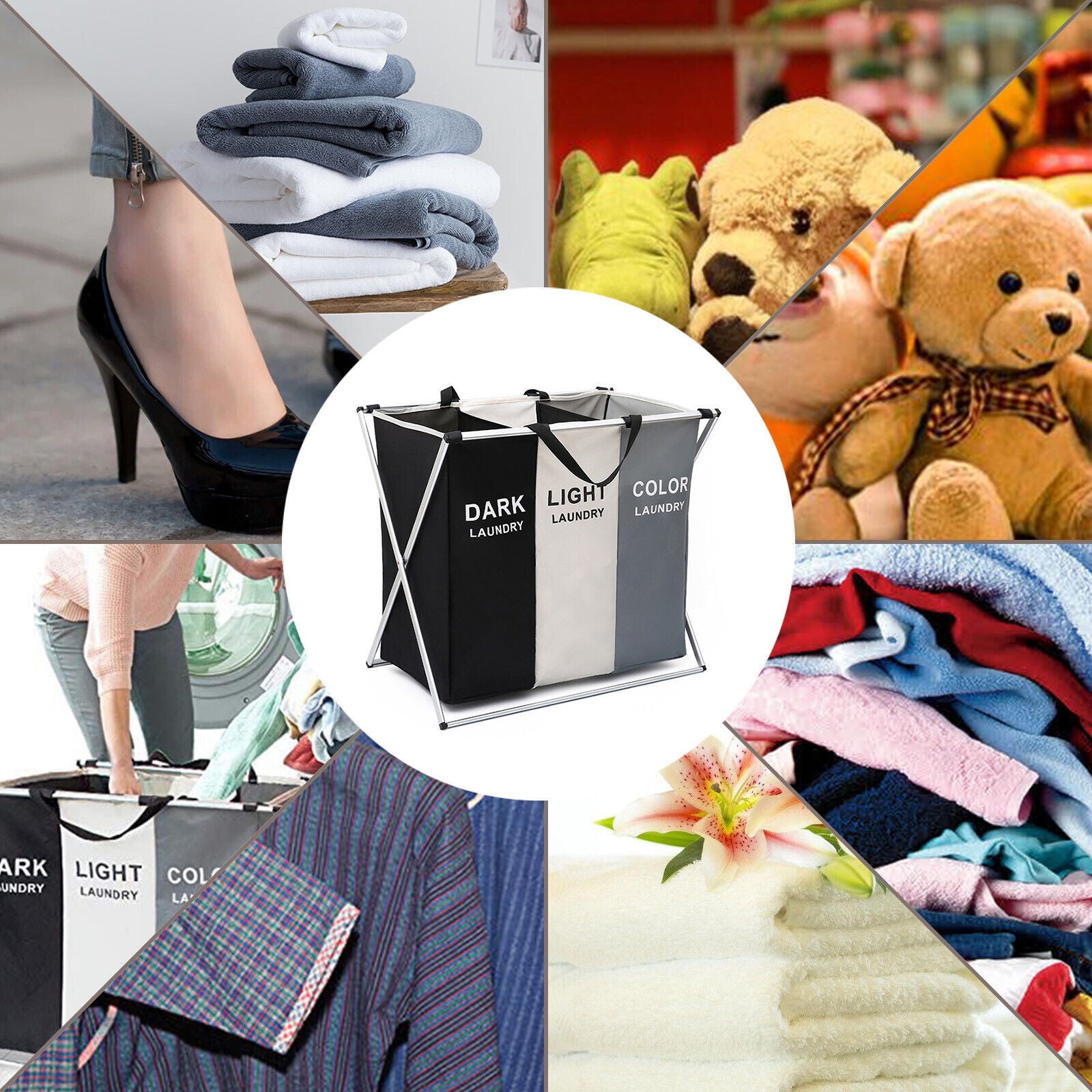 Aluminium Large Laundry Basket Hamper Washing Clothes Storage Bin Bag Light Dark